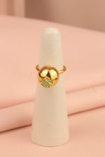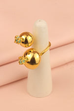 Destaca en cualquier lugar y ocasión con el anillo de esfera doble acompañado de murralla, elaborados bronce con baño en oro de 24k. Ideal para regalar o consentirte.